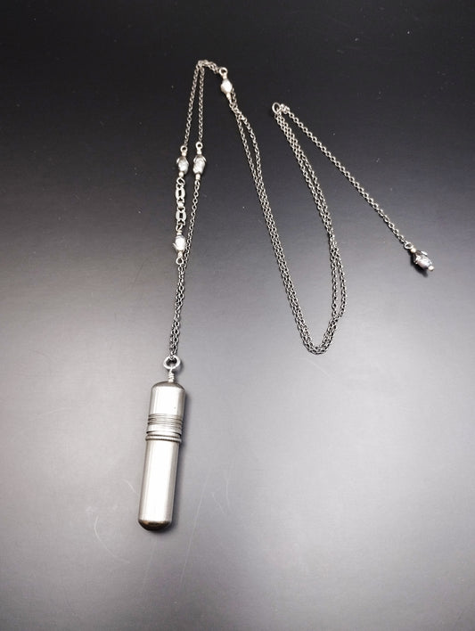 アンティークキーの物語ネックレス 真鍮×銀ビーズ×真珠